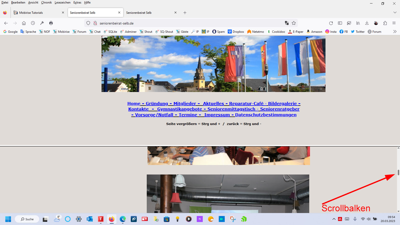 Hallo Tommy, schau Dir doch bitte mal die Homepage "seniorenbeirat-selb.de" an und sag mir bitte, was ich da schon wieder verstellt habe, dass die Bildlaufleiste nicht mehr funktioniert.