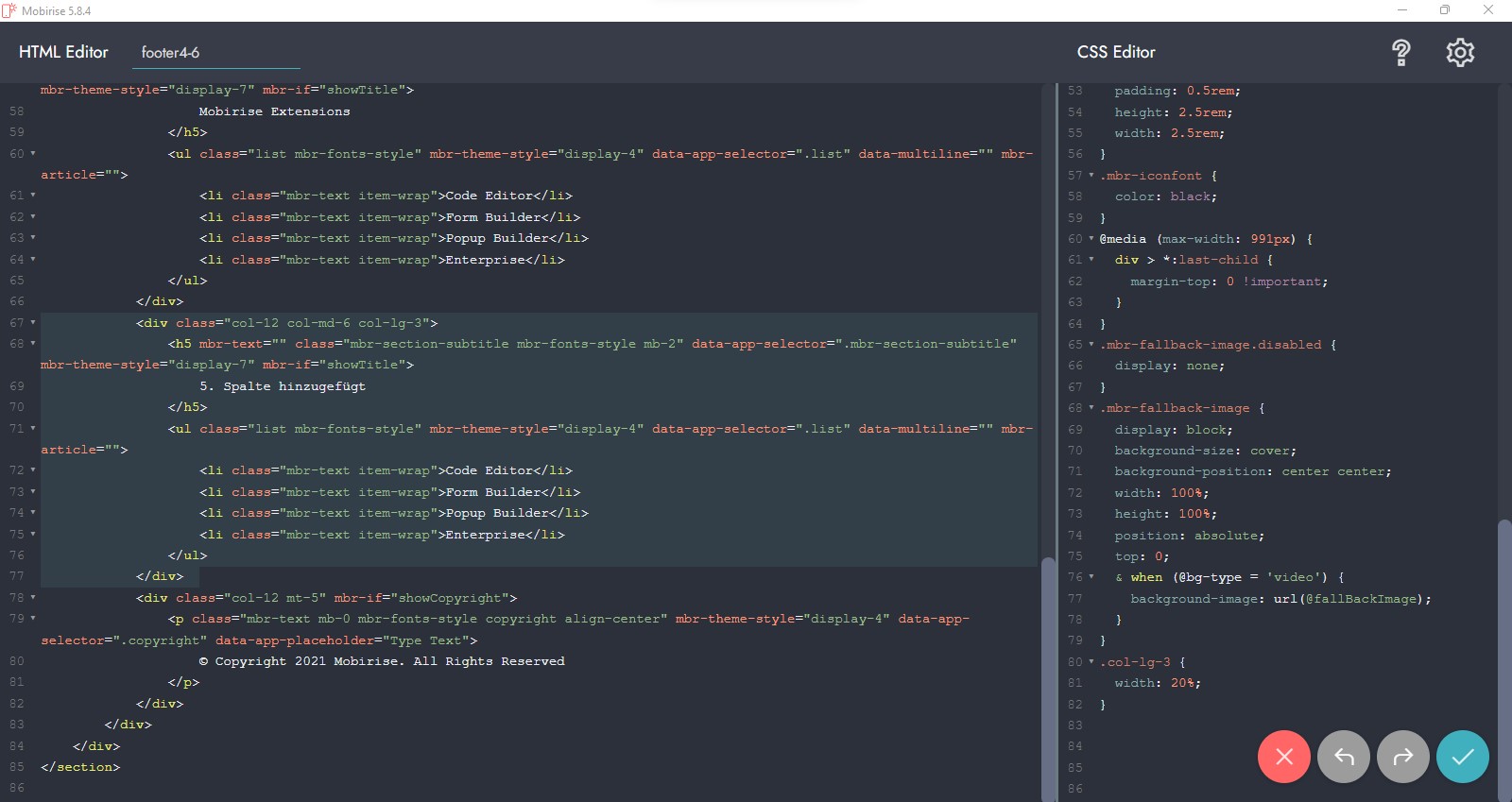 Dann habe ich die class="col-lg-3" auf 20% Breite (von 25%) im Bereich "CSS Editor" gesetzt: