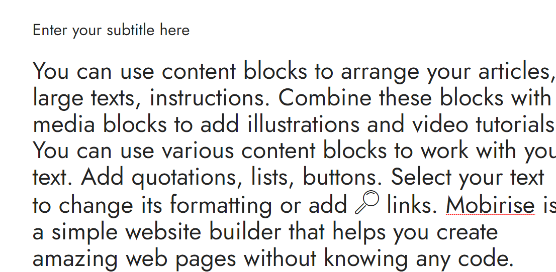 Hier habe ich dieses Icon als <span> Tag </span> dazu geschrieben (so wie Mobirise das auch z.B. bei seinen Buttons tut):