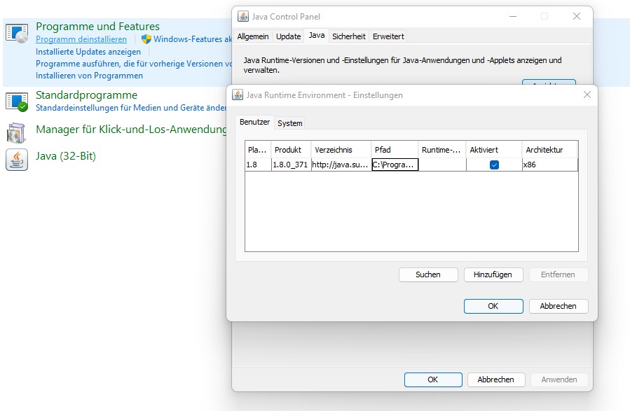 ... aber am eben in der Sytemsteuerung von Windows 11 doch noch in Klammern (JAVA 32bit).