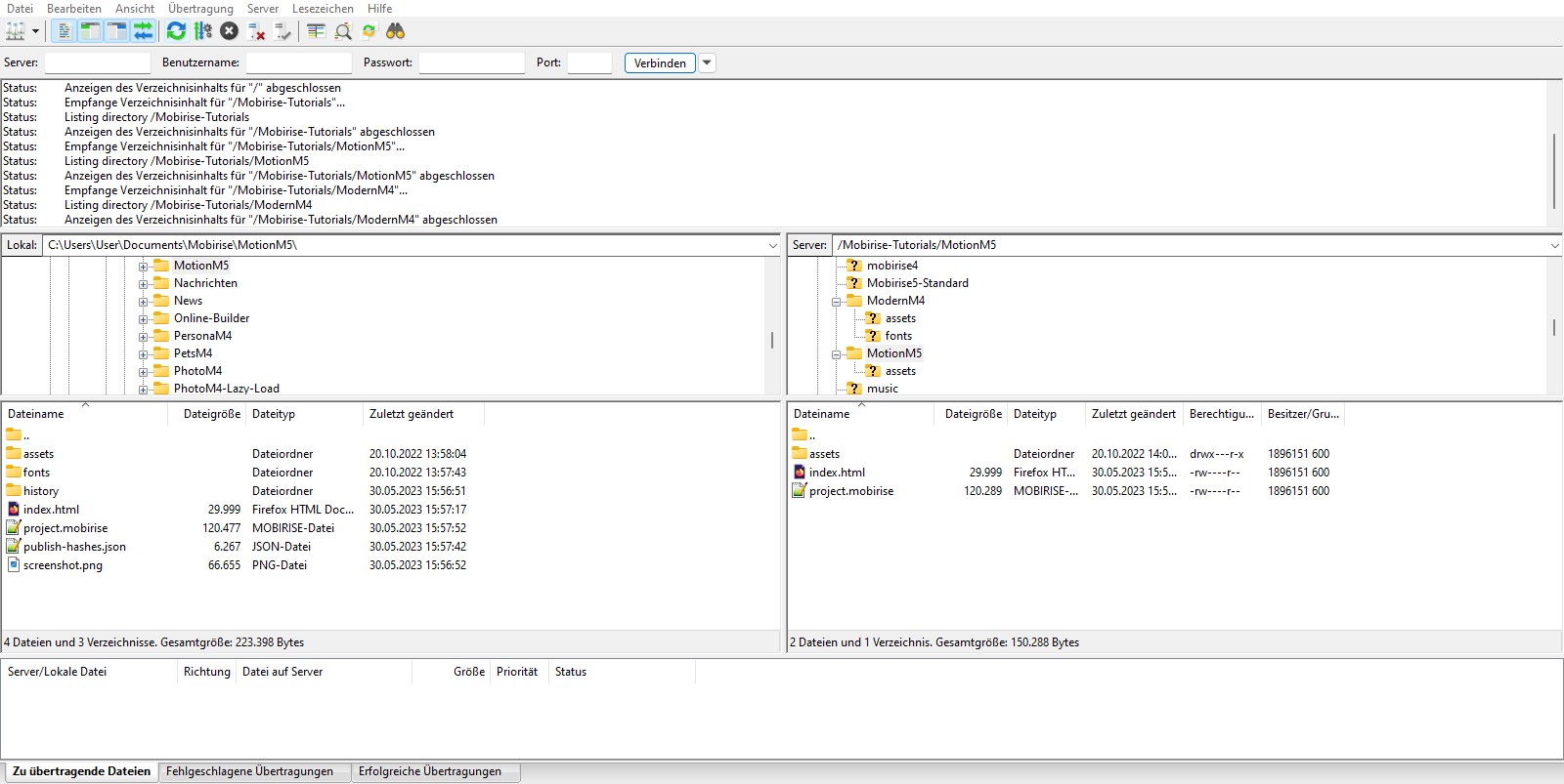 Ich habe danach noch mit Mobirise entfernt Publiziert (alles, nicht nur Änderungen). Die Projekt-Datei wird aber nicht übertragen und fehlt auf dem Server. Soll ich die Projekt-Datei mit FileZilla hochladen? Bringt das etwas?