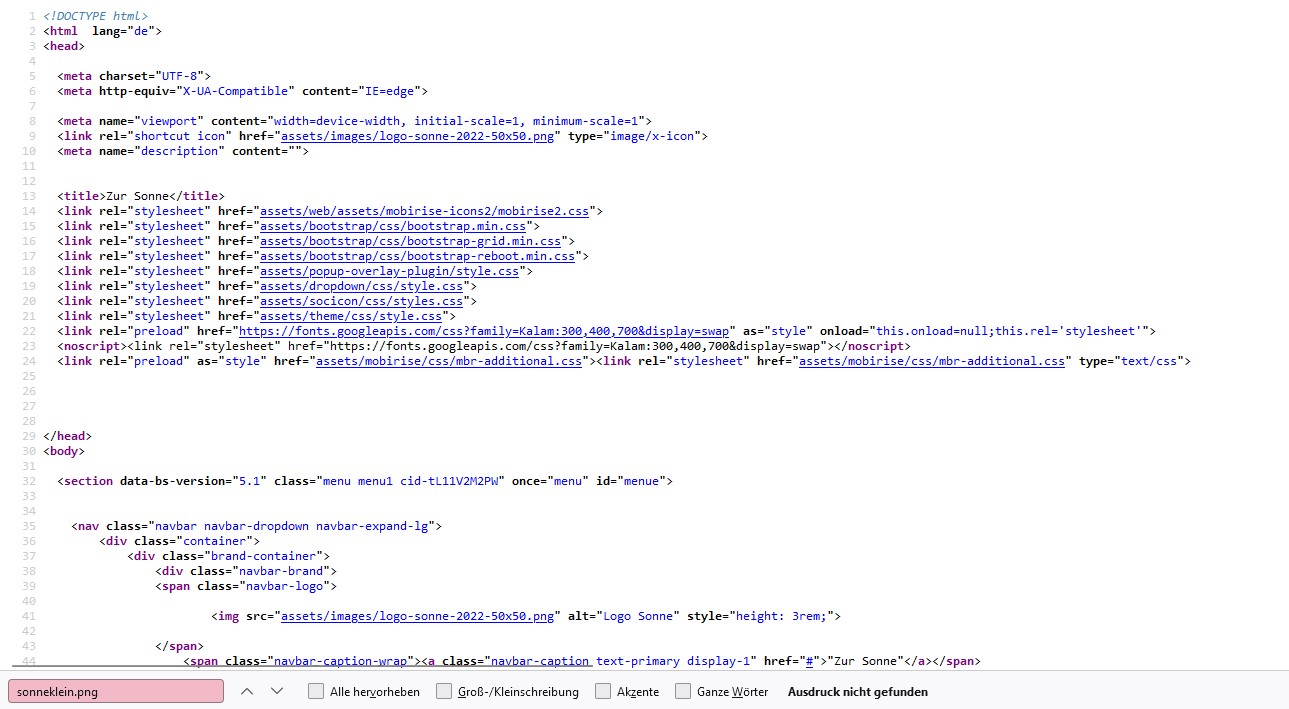 ... aber im Quelltext der Seite ist auch nirgends überhaupt das Bild "sonneklein.png" zu finden.