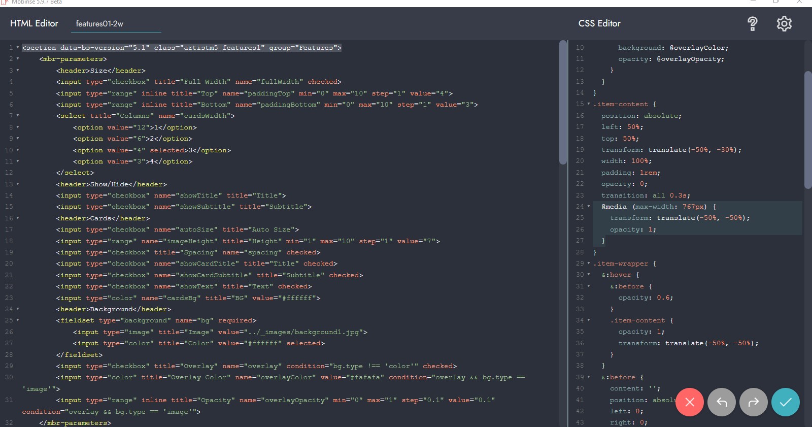 Du verwendest im Projekt das Standard-Thema "Mobirise5" und der Bilder-Block ist aus dem Thema "ArtistM5".