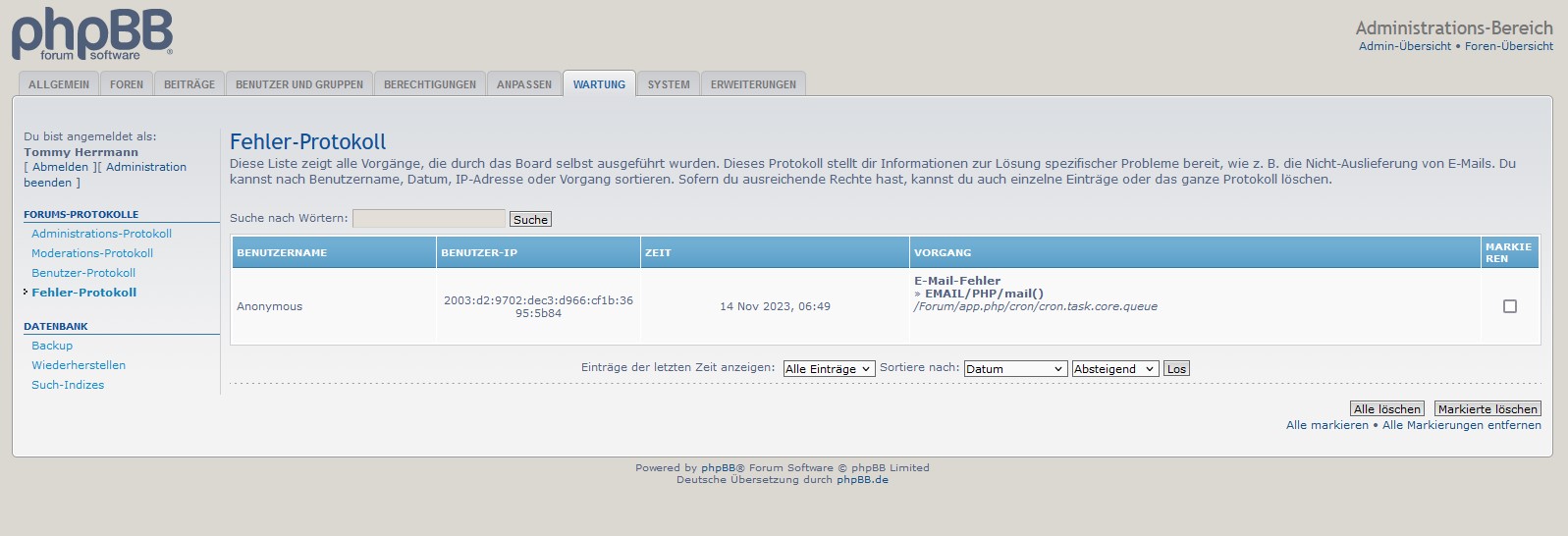 Dabei kamen keine E-Mails mehr an und es gab eine Fehlermeldung im Adminbereich (ACP).