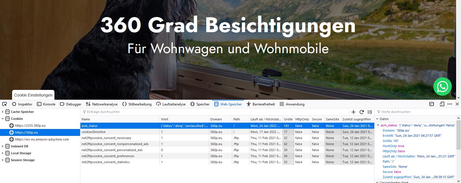 Bei Dir sehe ich gerade diese Cookies: