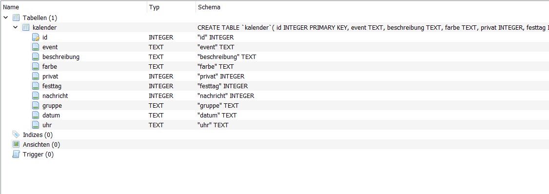 Event-Kalender mit SQLite