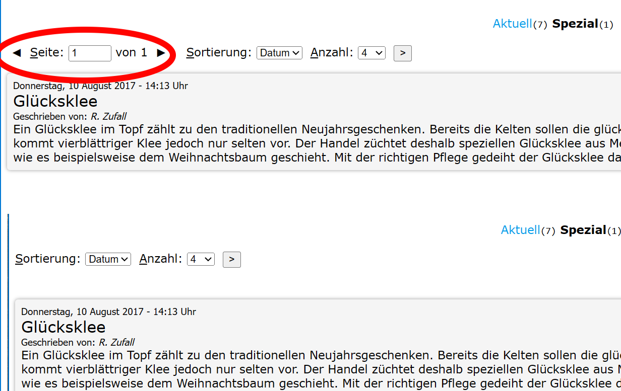 Genau! Oben kann man die Kategorie über die links auswählen (Aktuell(7) Spezial(1)) und unten dann vor und zurück springen. Und das ist auch eine Navigation :)