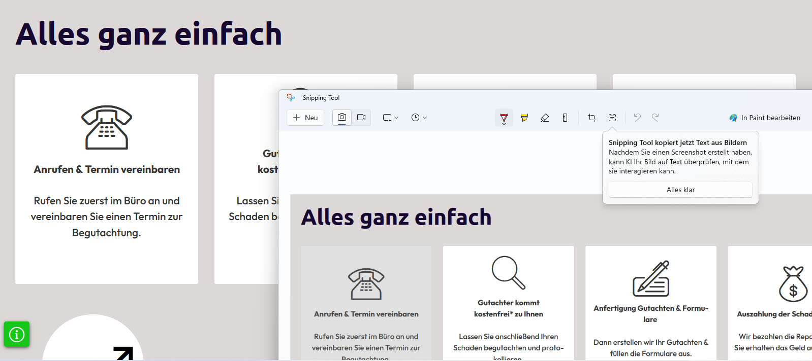 das Werkzeug "Snipping Tool" für Screenshots kann nun auch Texte aus Bildern über die KI (künstliche Intelligenz) verarbeiten.