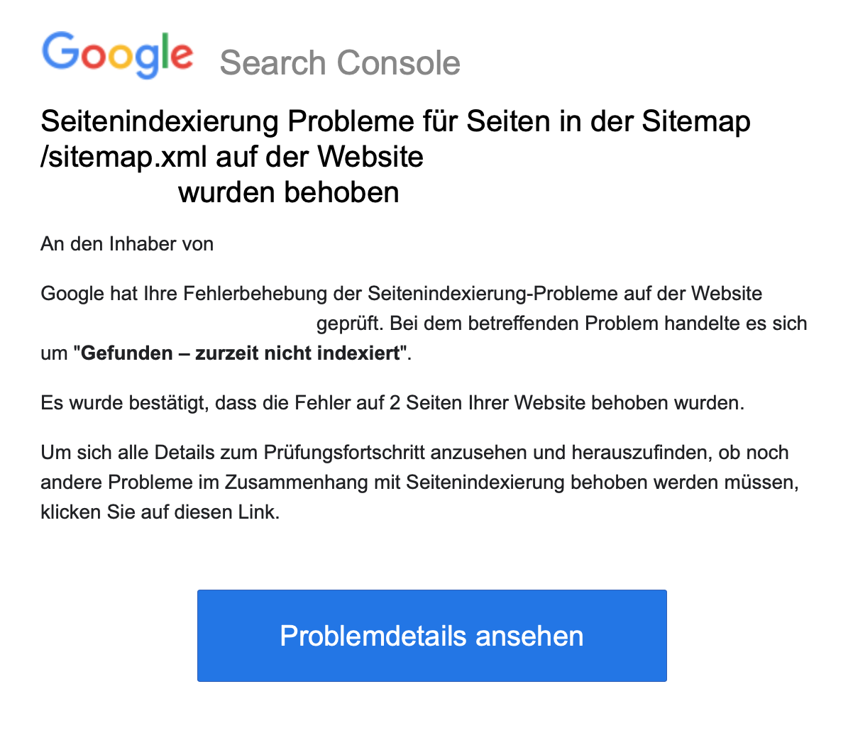 Seitenindexierung Probleme für die Website https://www. DOMAIN.de/ wurden behoben