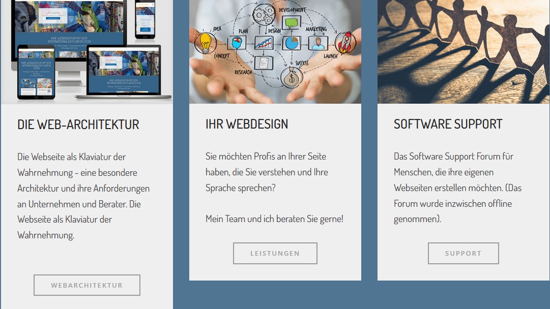 Ich habe übrigens gerade nochmals auf diesen Block (Screenshot) geguckt, bei dem Du ja meintest, dass alle Cards gleich hoch seien. Das ist reiner Zufall, fügst Du etwas mehr Text hinzu, wie ich es jetzt im Browser am linken Block getan habe, verändert sich die Höhe. Das ist zum Beispiel ein alter Bug im Thema "Portfolio M4". Diesen Block gibt es auch im Standard-Thema "Mobirise 5" und dort bleibt dann die höhe aller Cards immer gleich, egal wie viel Text man verwendet.
