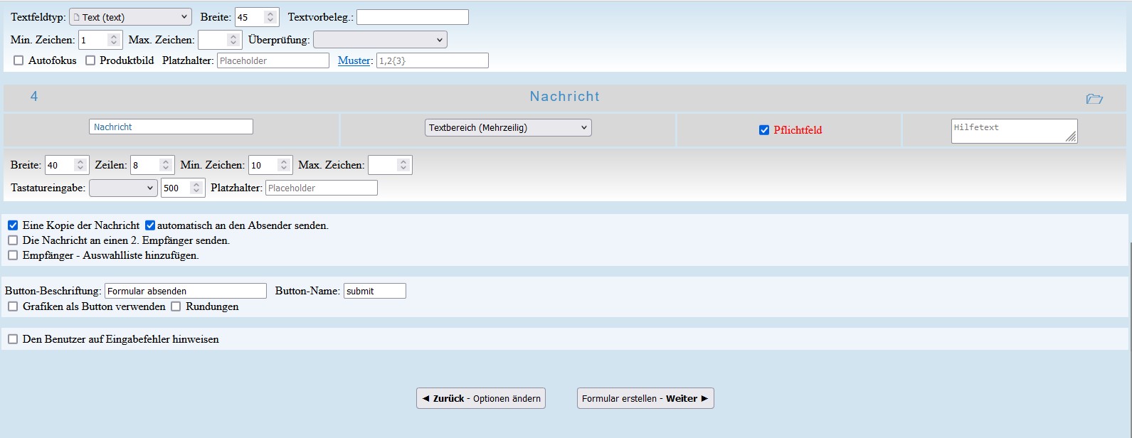 Formulargenerator - automatische Rückmail