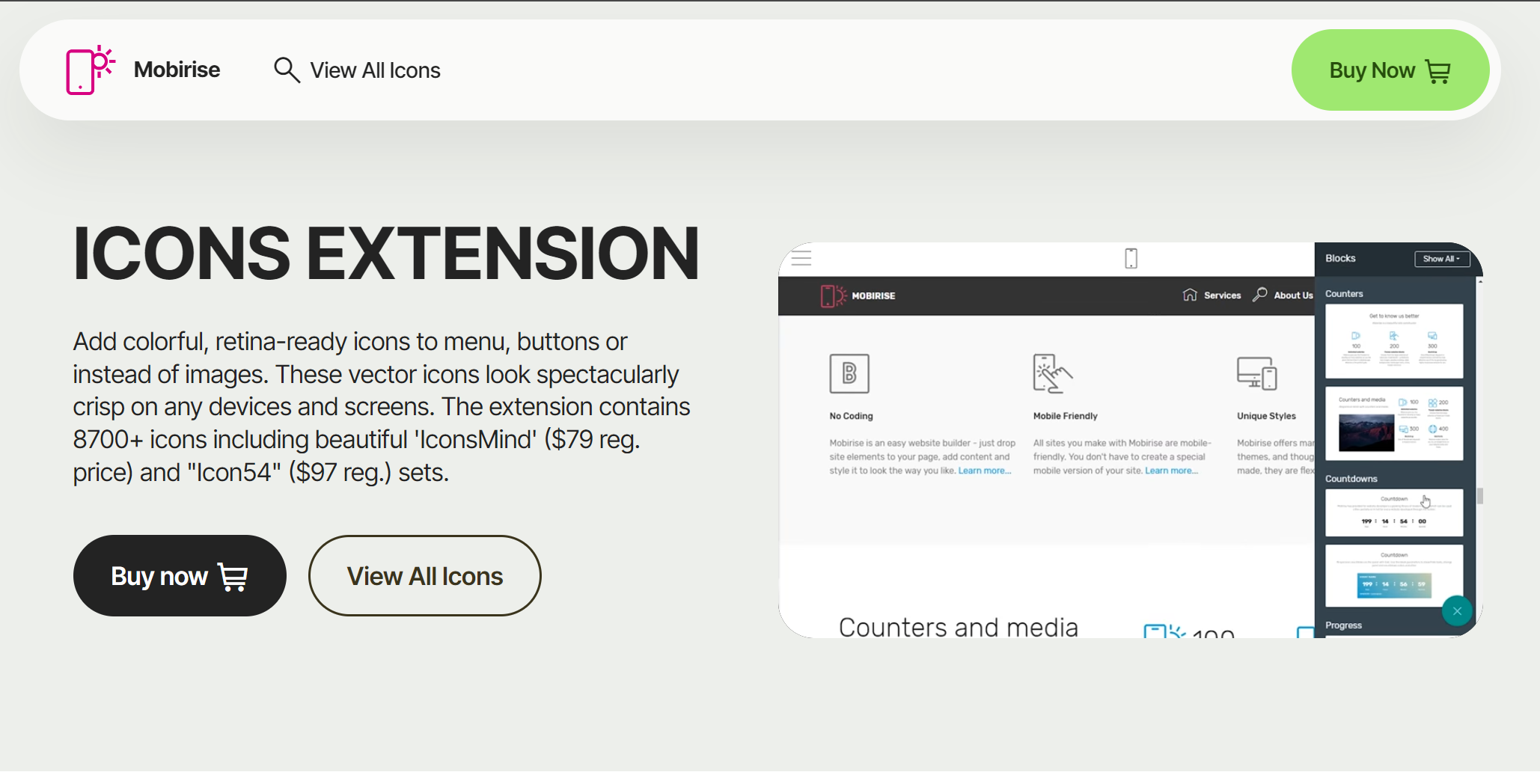 Ich weiß nicht, was Du auf der Webseite von Mobirise suchst, dort kann man das Icon-Set erneut kaufen. Auf der Webseite von Mobirise weiß doch niemand, dass Du das bereits gekauft hast. Natürlich will man dann Geld haben, wenn da einer auf "Kaufen" klickt :eek: