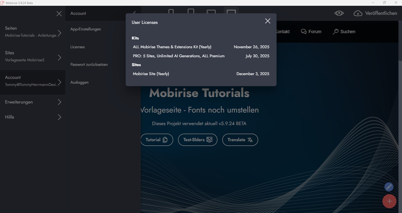 Oder was ich auch schon hatte: Mobirise normal gestartet, Projekt geladen, aber kein Symbol für den Code Editor auf der Arbeitsfläche, dieses </> Dingens. Auch bei mir alle Kits mit Lizenz bis November 2025 gültig.