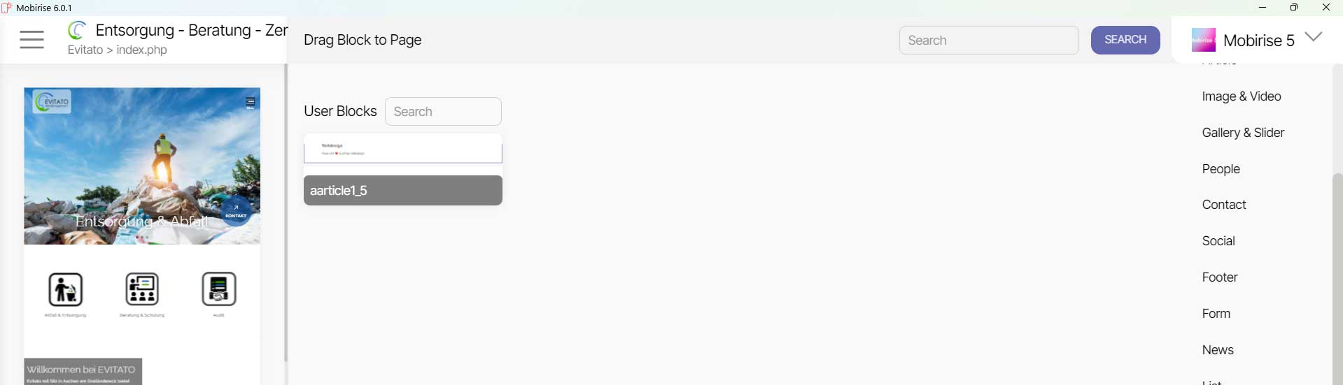 Dennoch habe ich etwa 40 bis 50 Benutzerblöcke alleine im Standard-Thema "Mobirise5" und einige Hundert in allen Themen, die ich seit ca. 6 Jahren gespeichert habe, über Dutzende von Versionen hinweg, und ich habe nie etwas verloren.