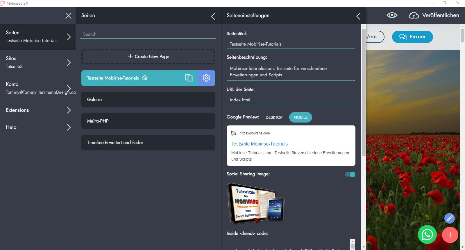 Grundsätzlich gilt (wie auch schon bei NOF) - mache Dein Projekt nicht zu groß. Alle Daten müssen bei Mobirise (wie auch bei NOF) in der Projekt-Datei "project.mobirise" (bei NOF die .nod Datei) gespeichert werden und die sollte nicht unendlich groß werden.