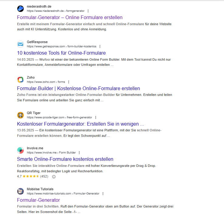 Gebe ich bei Google, anstelle von "Formular Generator" zum Beispiel "