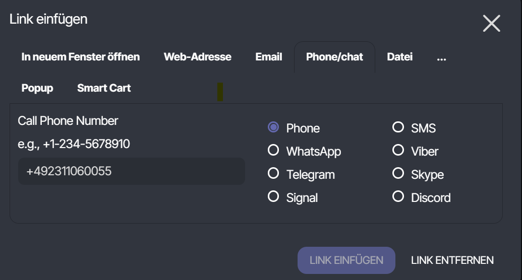 Tja. Ok. WhatsApp Button Weiterleitung ist erstmal drin.