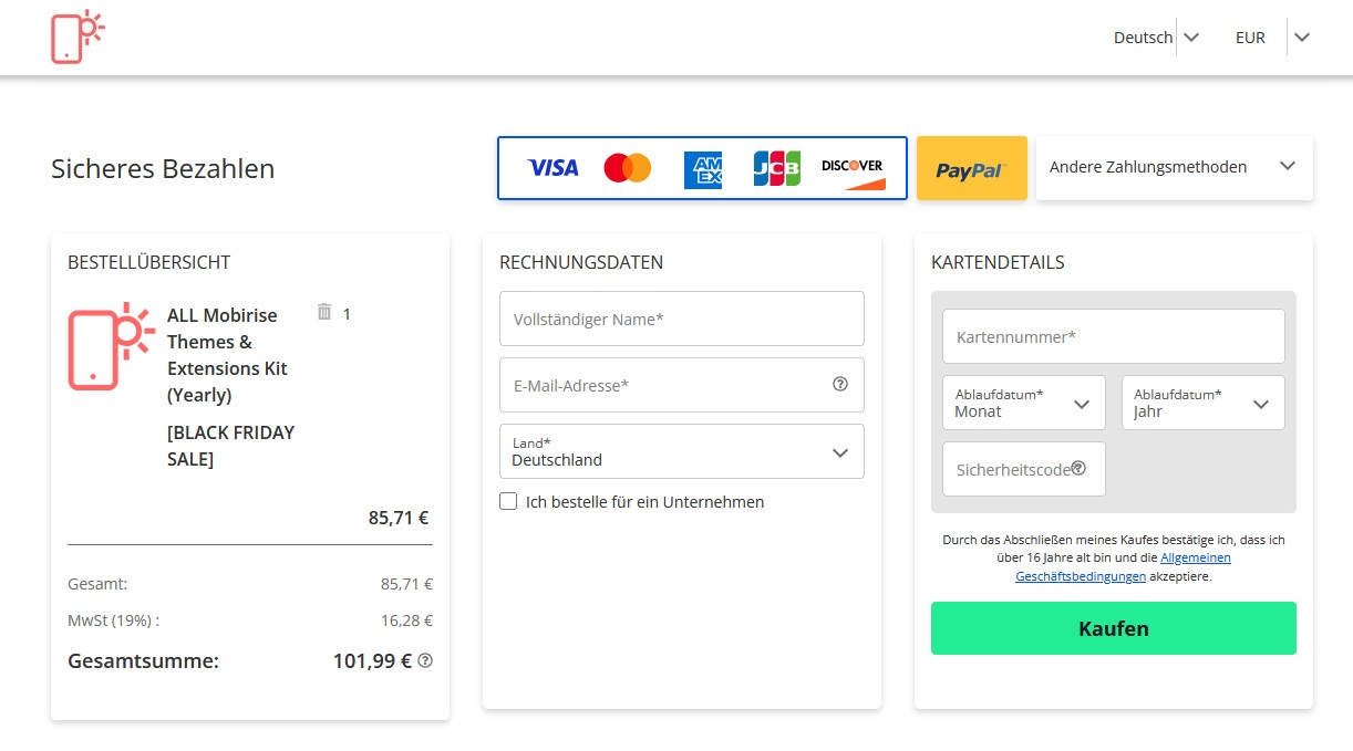 Sonderangebote von Mobirise