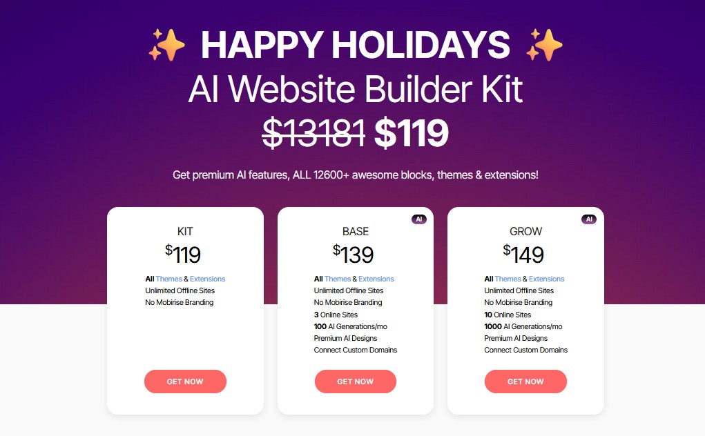 Der "Happy Holidays Sale" hat bei Mobirise begonnen.