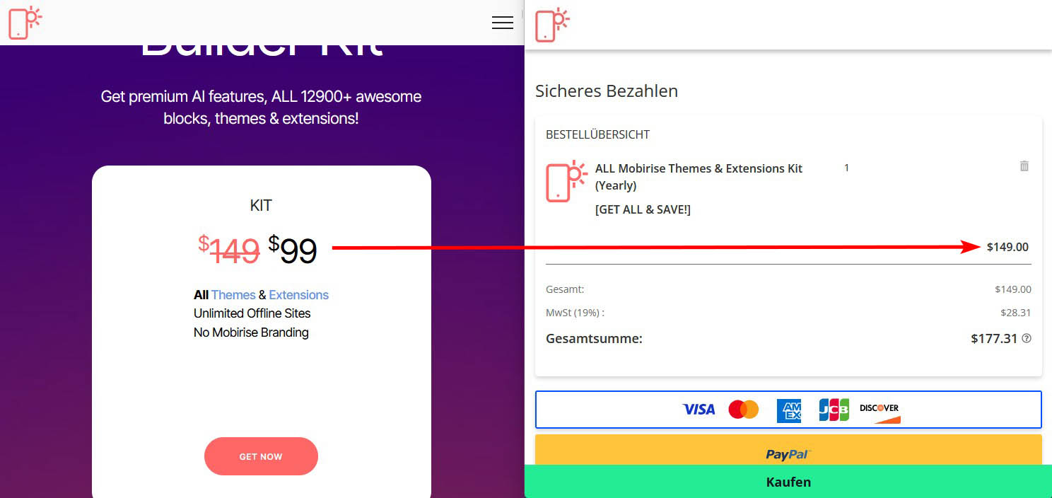 Sind die Angebote auf der Mobirise_Seite (sind ja in Dollar) ohne oder inkl. MwSt.?