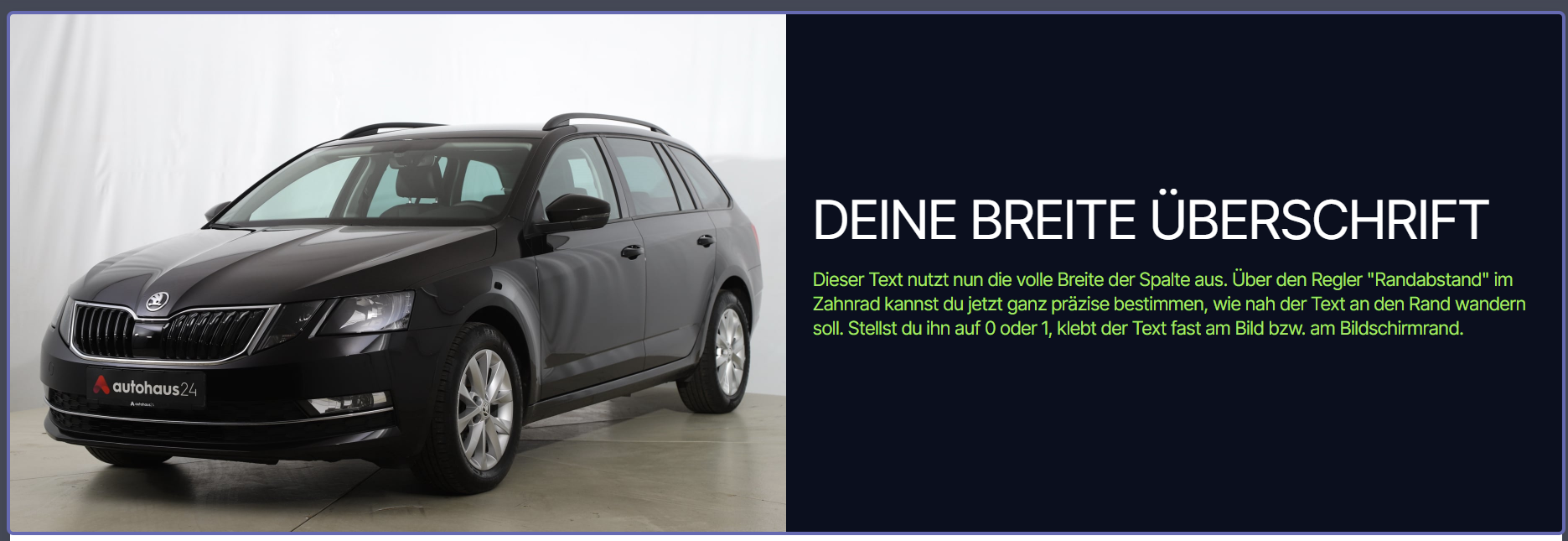 Eigentlich meinte ich den kompletten Block . Bild und Text gemeinsam auf eine flexible Breite einstellen (nicht zwingend full width. Entschuldige. Will Dich aber auch nicht langweilen. Ich leg mich bald ab - Danke !!!!!!