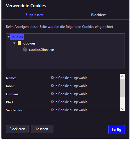 Auf meiner Seite z.B. sind auch alle Cookies aufgeführt die aktiv sind.