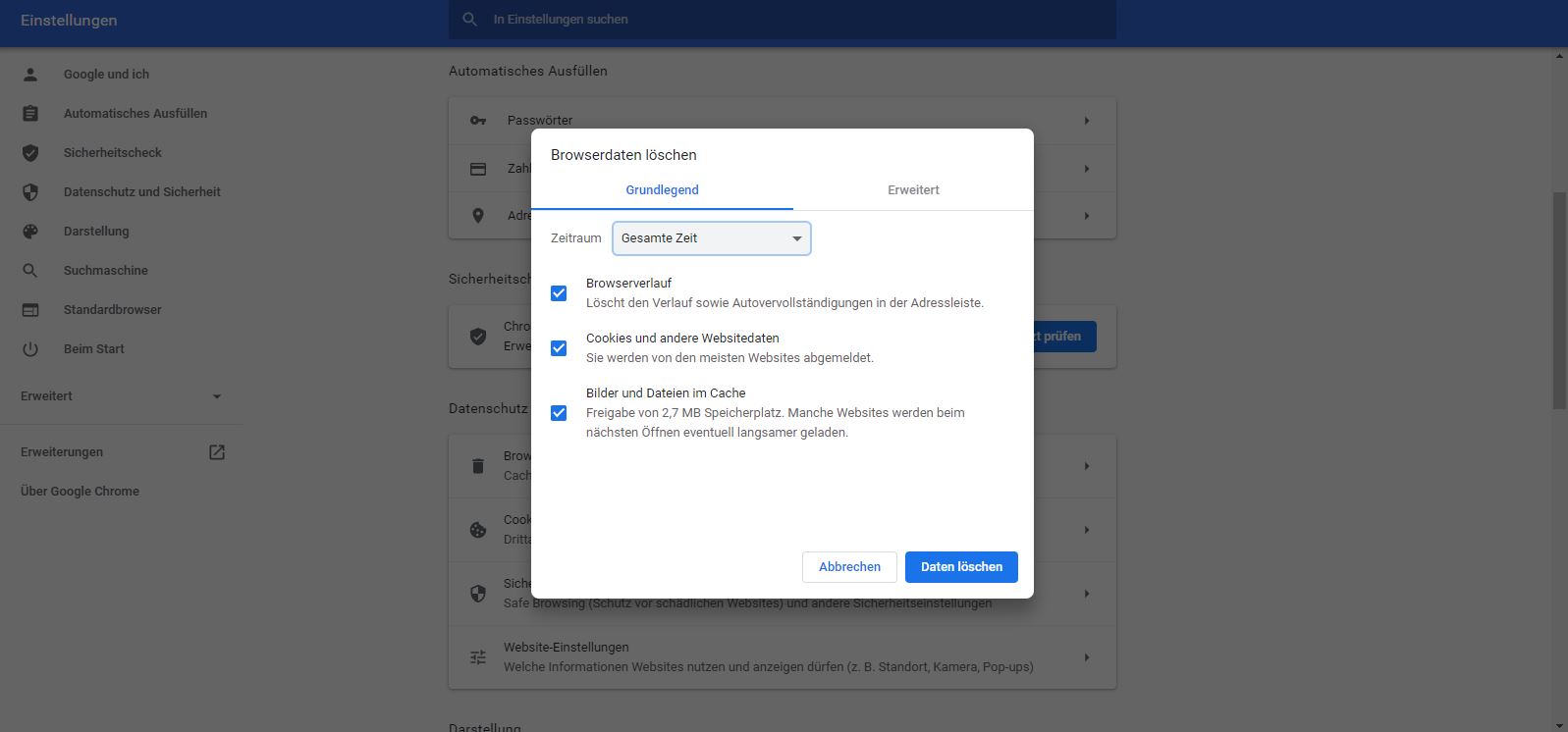 Hast Du denn, z.B. im Chrome-Browser und natürlich auch bei allen anderen Browsern, auch beim Löschen der Cookies den "gesamten Zeitraum" gewählt und nicht z.B. nur die letzte Stunde?