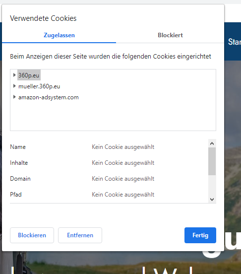 Der Firefox blockt je nach Einstellung auch Drittanbieter Cookies.