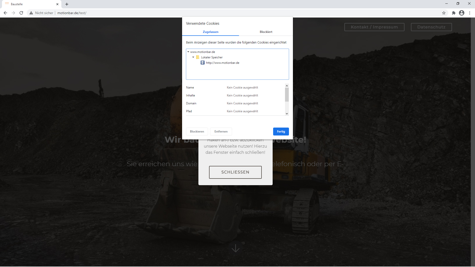 edge://settings/cookies/detail?site=www.motionbar.deHast Du denn, z.B. im Chrome-Browser und natürlich auch bei allen anderen Browsern, auch beim Löschen der Cookies den "gesamten Zeitraum" gewählt und nicht z.B. nur die letzte Stunde?