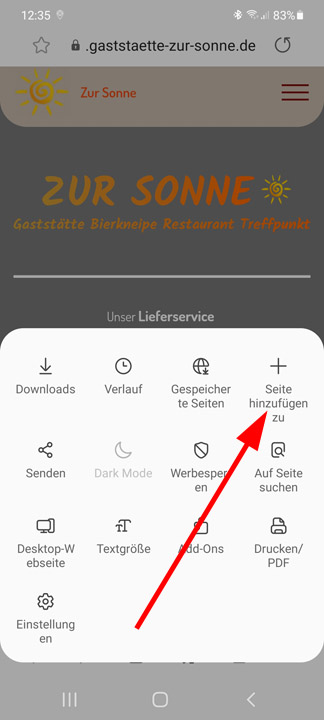 Sonnenseite aufgerufen. Zum Startbildschirm hinzufügen aufgerufen. Und was soll ich sagen: