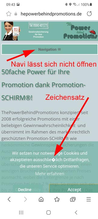 Hier ist das Cookie-Skript noch da - und KEIN Querscroller am Handy