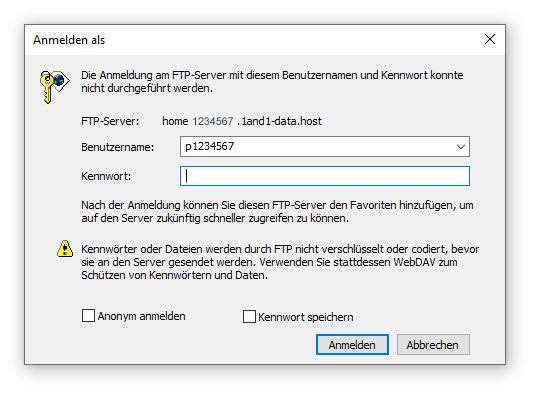 ... also im Prinzip verwendet Ihr die gleichen Daten, die Ihr auch bei Eurem FTP-Programm wie z.B. "FileZilla" eingegeben habt.