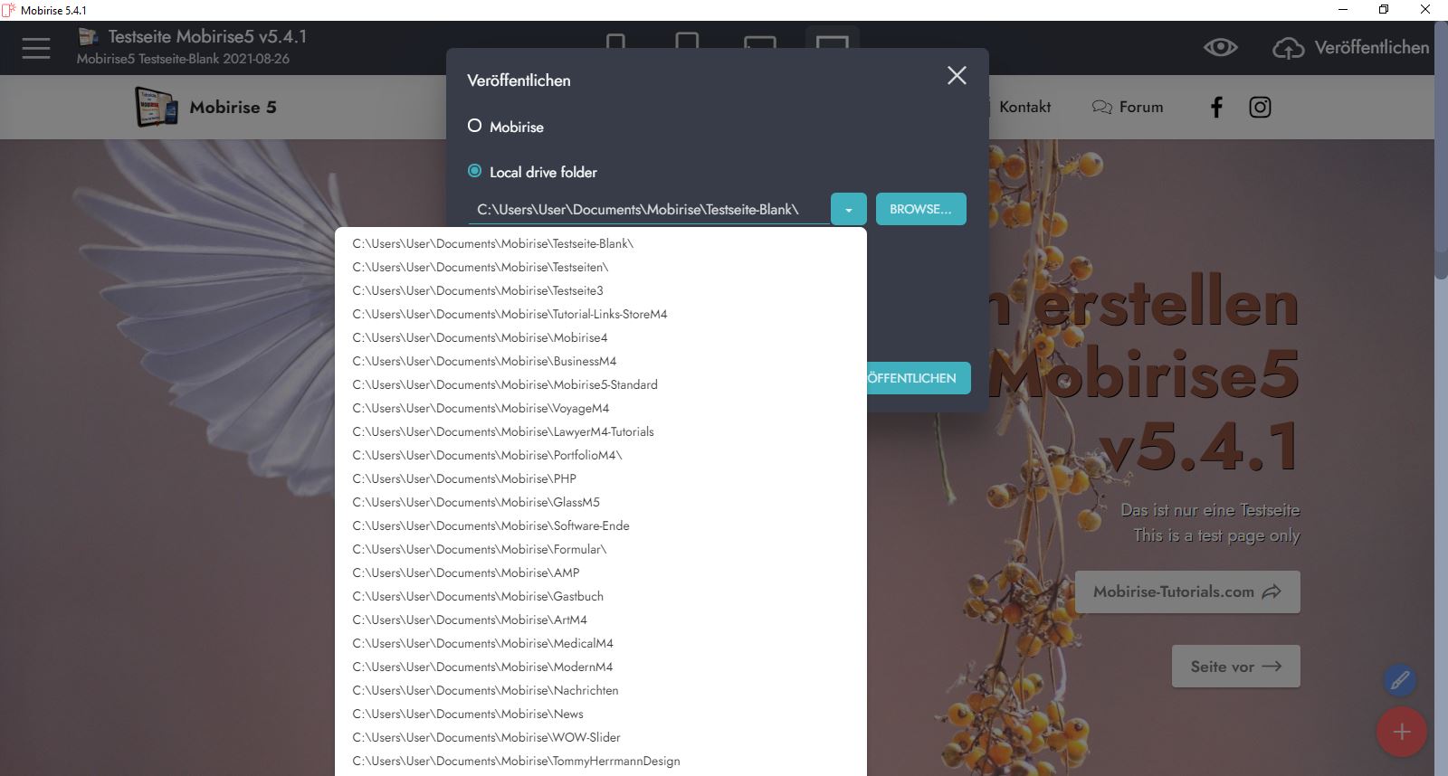 Bei der lokalen Publizierung hatte ich schon (falsch, jetzt korrigiert).Tommy Herrmann hat geschrieben: Fr 27. Aug 2021, 13:20 ... na dort, wo Du lokal hin publizierst. Du kannst das lokale Verzeichnis anlegen, woimmer Du möchtest. Hier im Screenshot bei mir mal ein Beispiel: