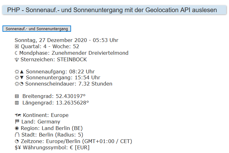 Sonnenaufgang und Sonnenuntergang mit der Geodaten des Benutzers auslesen