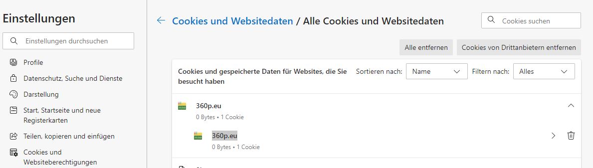 Beim Edge-Browser kannst Du einzelne Cookies auch so löschen: