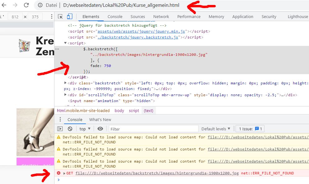 Zumal der Backstretch-Hintergrund Deiner Seite auch bei mir schon lokal angezeigt wird, wenn ich Deine Seite im Browser downloade