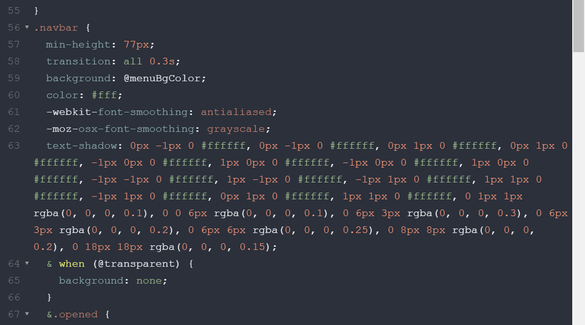 Hier findet Ihr den Codeausschnitt wo ich es versucht habe: Bei Background habe ich einfach die RGBA-Angaben gemacht, dann wurde aber wieder die komplette Navbar incl. Text teiltransparent.