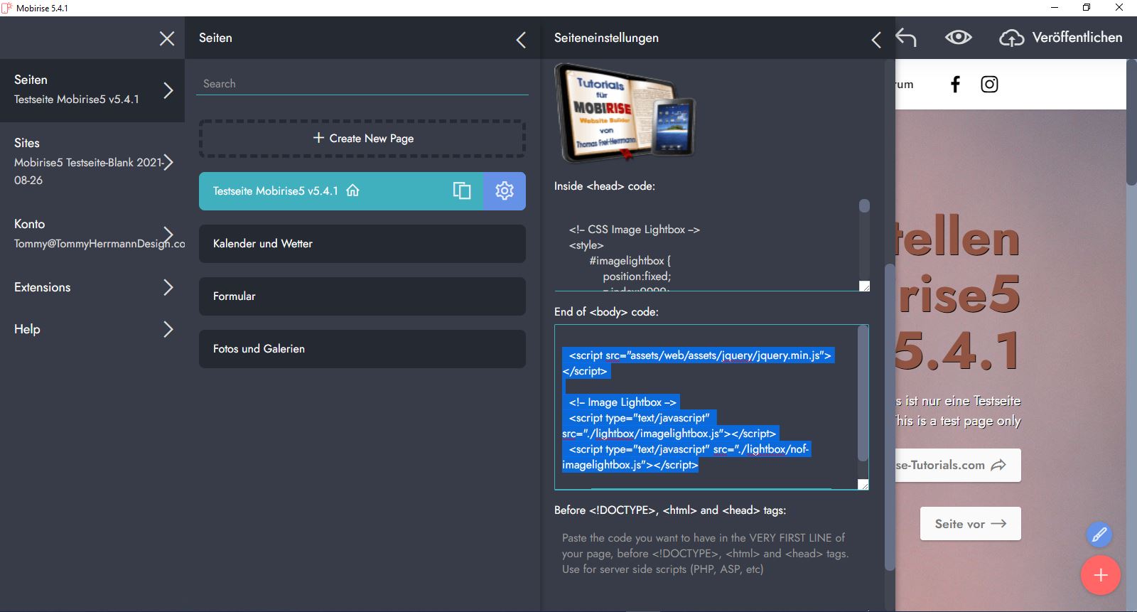 Ich habe auch in Mobirise z.B. die ganz alte und originale "Lytebox" (noch von Markus F. Hay) eingebaut: