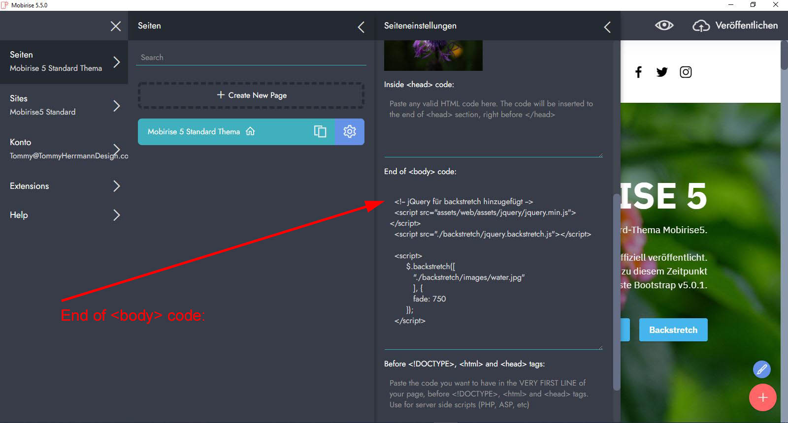 Wie wolltest Du denn dort die Datei "jquery.backstretch.js" und das Bild "3392075.jpg" hochladen? Du kommst doch gar nicht an den Server von Mobirise ran