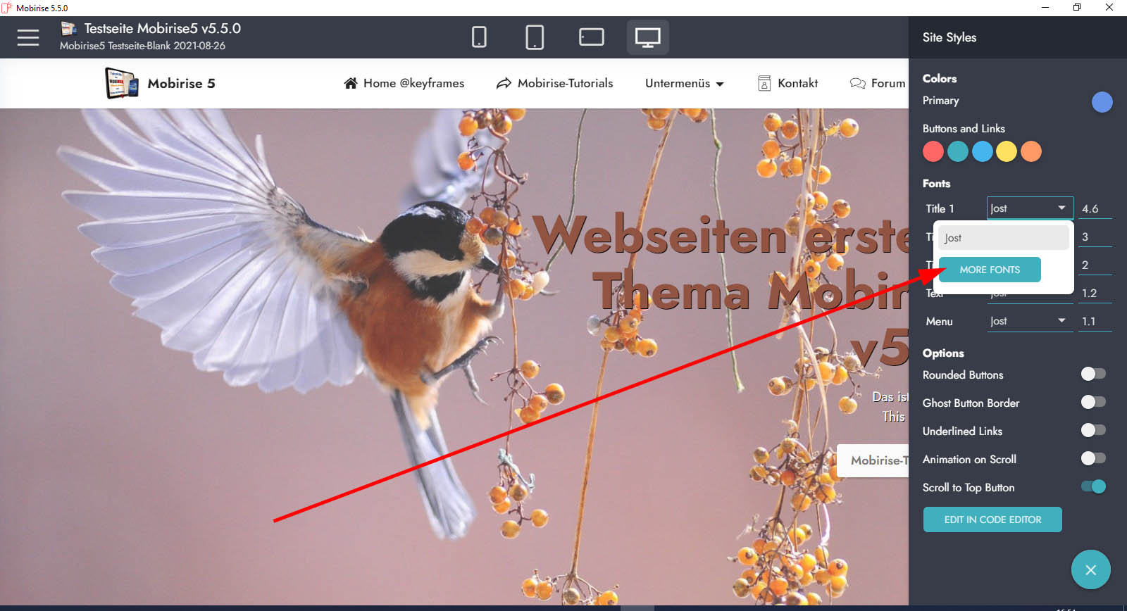Mobirise lässt micht das auch machen, ignoriert den Fonts aber und ich steige nicht durch, was ich an welcher Stelle anpassen muss.