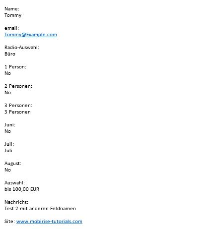 Das "No" (nein), das bei nicht gewählten Checkboxen in der Mail steht, wird übrigens von Mobirise in der JavaScript Datei: