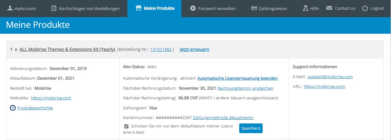 Im 2Checkout-Account unter My Account steht beim Bestelldatum der 16.11.20, also das Datum, an dem ich die Rechnung für das folgende Jahr bezahlt habe.