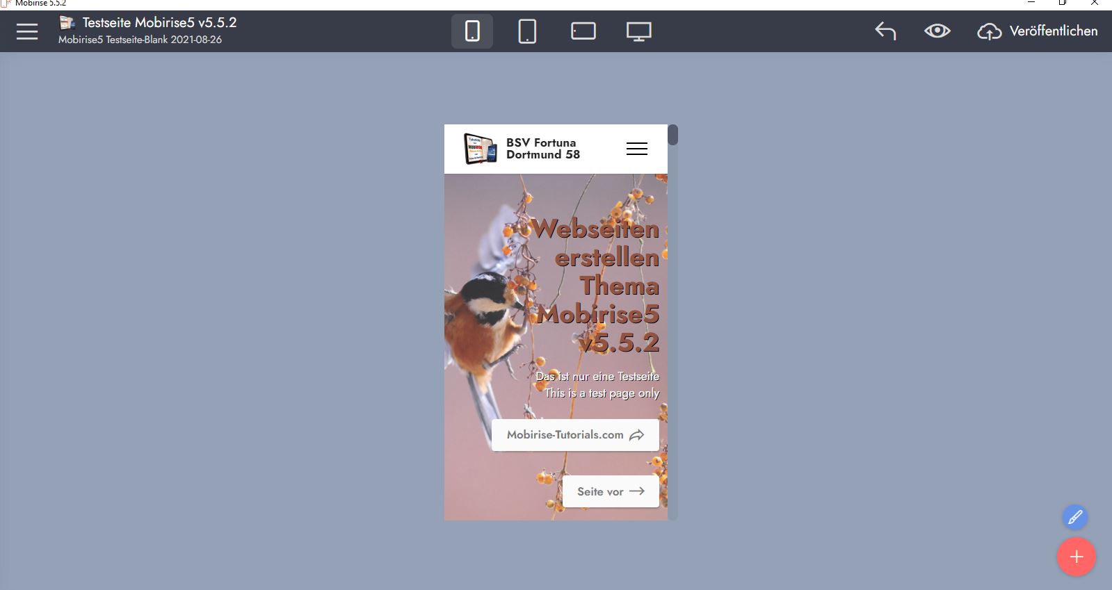 Achtung: Die Auswirkung kannst Du bei dieser Class nicht in der Seitenansicht von Mobirise sehen. Du musst daher zunächst - zumindest lokal - publizieren.
