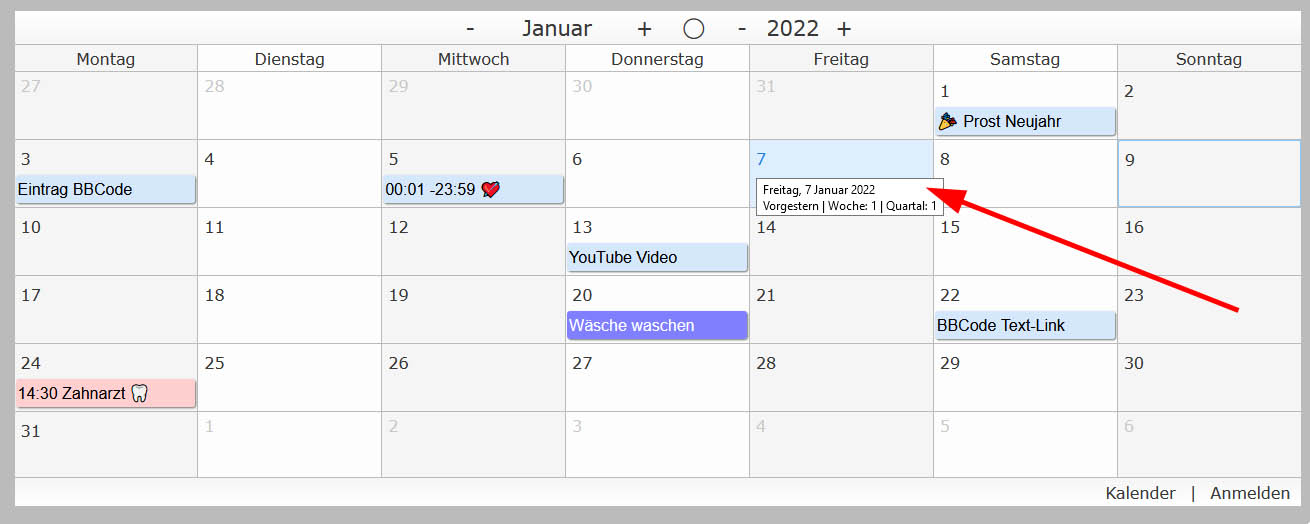 Bei mir werden noch (einige) BBCode mit im Mausüber angezeigt - gehe mal über "Wäsche waschen" am 20.01.2022.