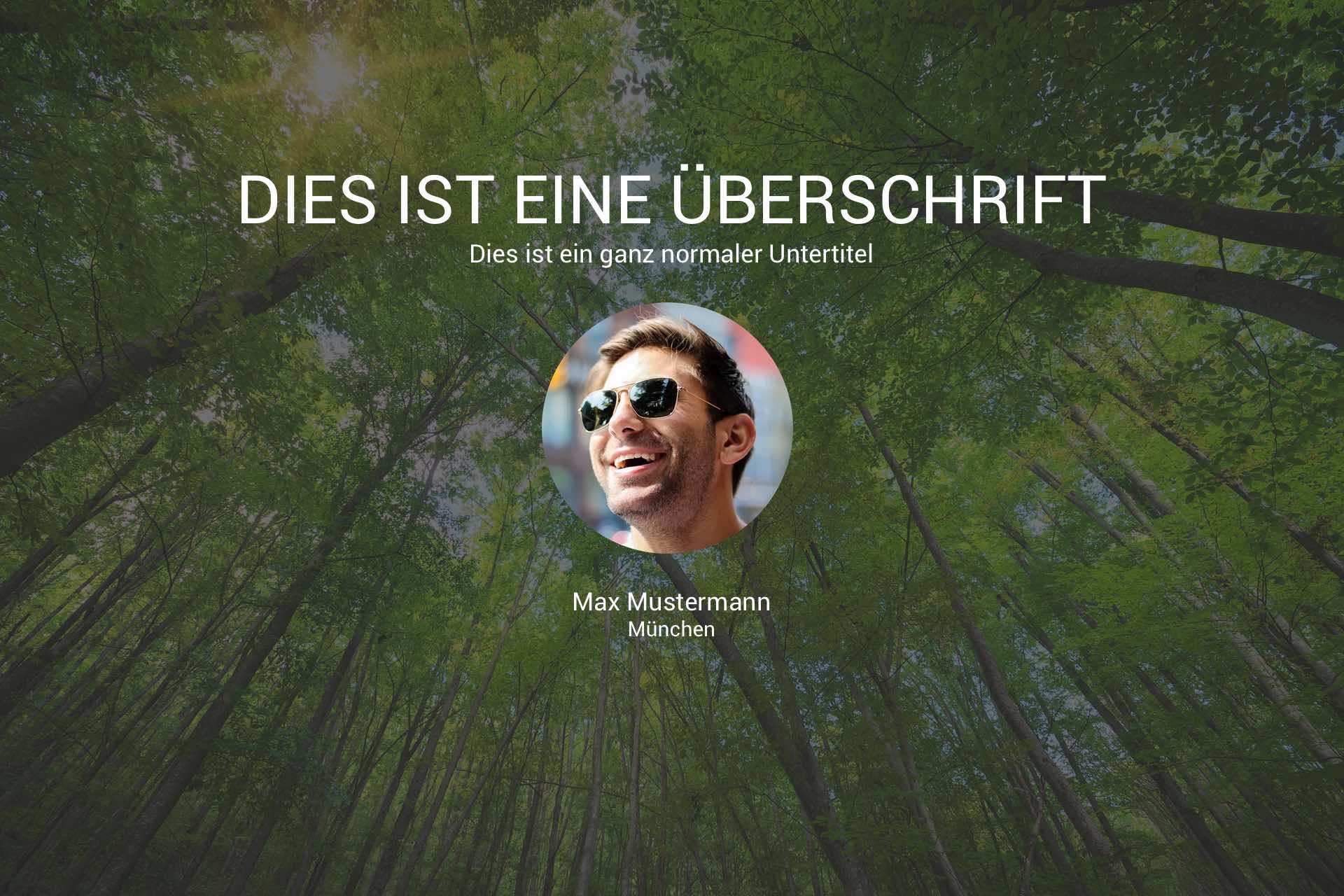 Fullwidth mit Hintergrundbild - darin eine Headerüberschrift mit einem Untertitel. Darunter ein kleines Profilfoto (rund) und darunter der Name. Versuche es mal hier anzuhängen.