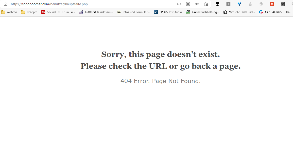 Für Hauptseite kommt ebenfalls ein 404 https://sonoboomer.com/admin/hauptseite.php aus demselben Grund.