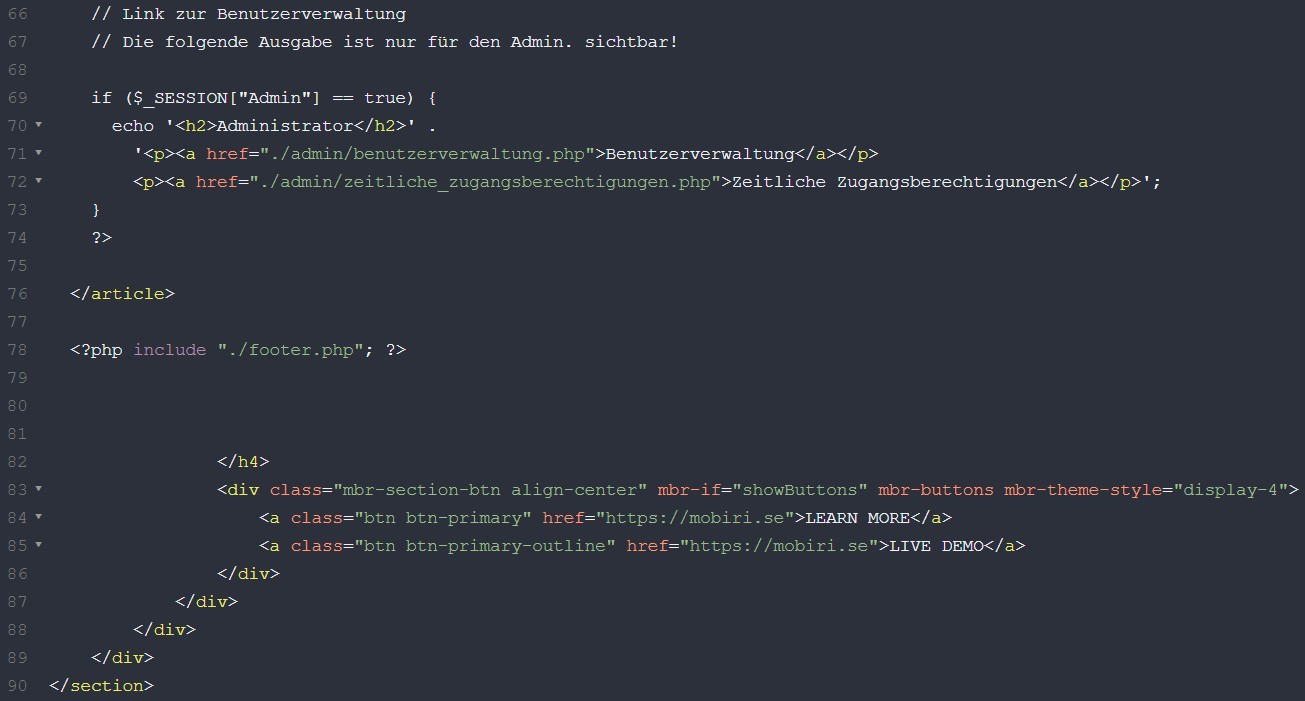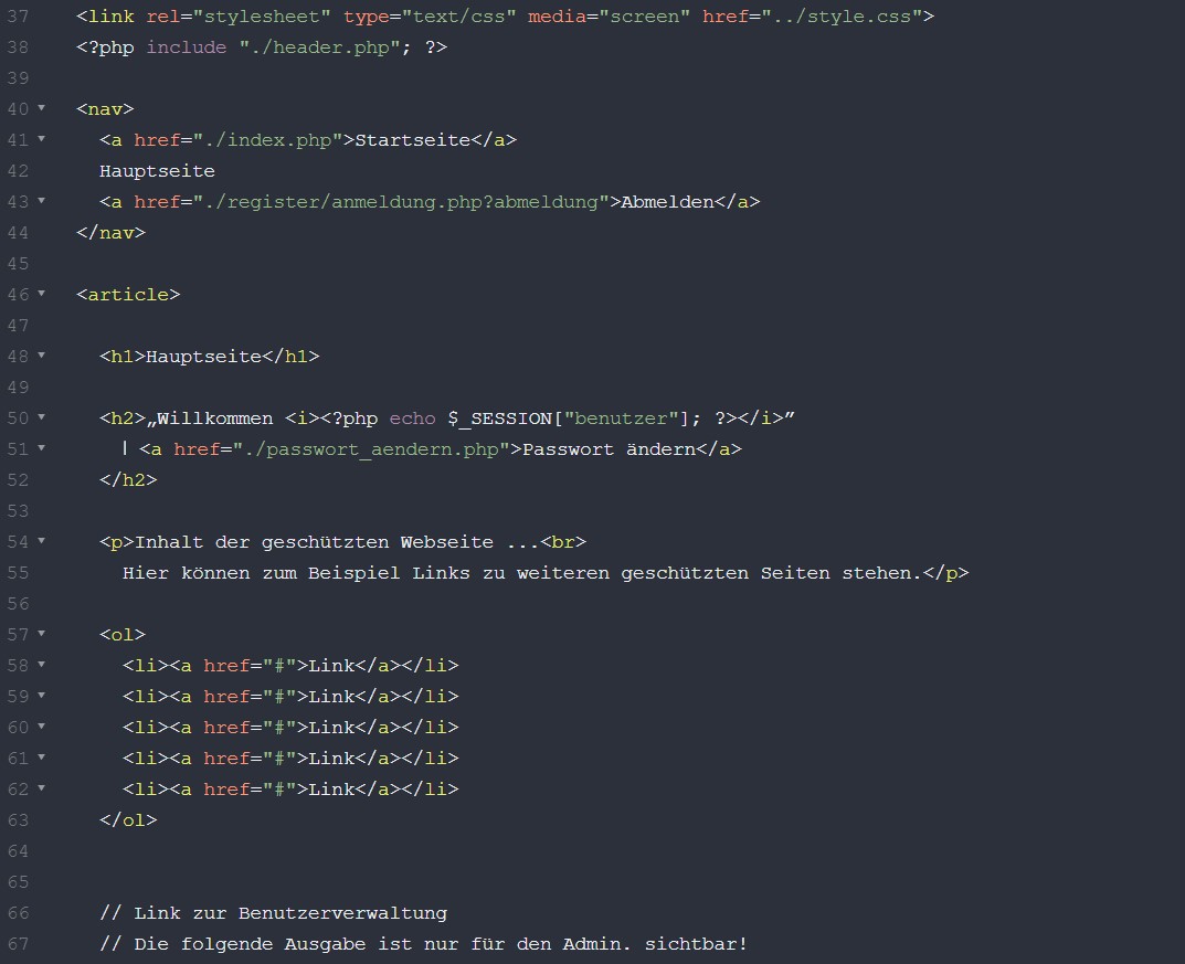 Unten zeigt die Seite aber ihren kompletten zu schützenden Inhalt, der aber erst nach Eingabe der Login Daten sichtbar sein sollte.
