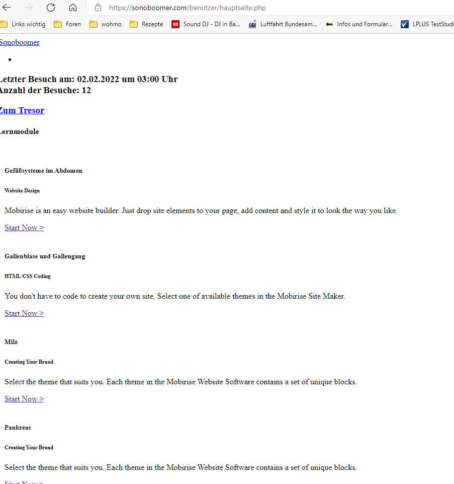 oder mit Login (Tester, schnuckelchen) https://sonoboomer.com/ 2. Block Button Registrierung/Anmeldung