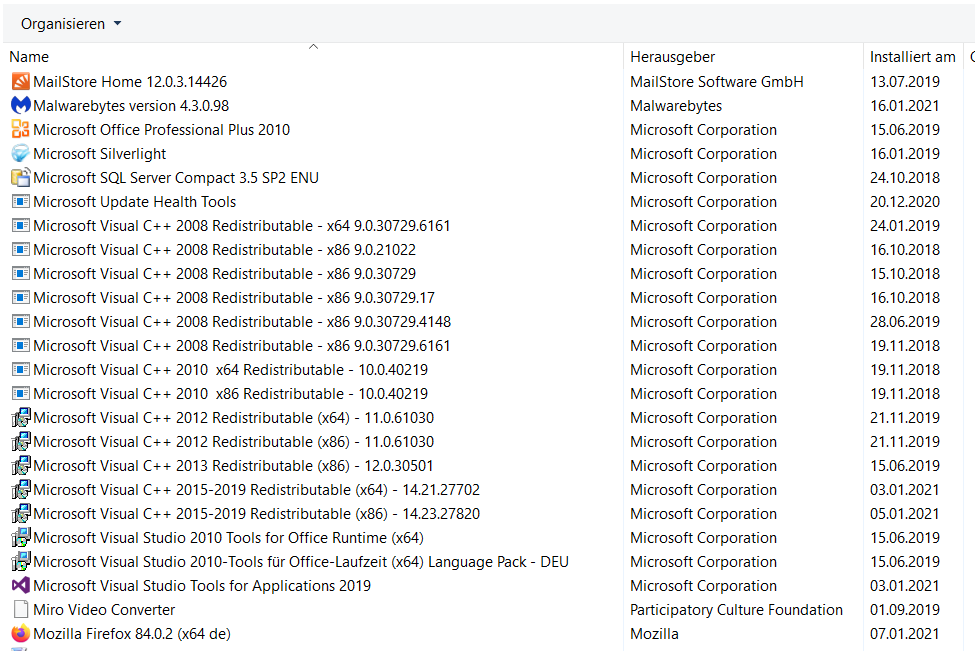 danke für den Bericht - mir ist das allerdings so aber noch nie passiert - an keinem PC oder Laptop - und nie hatte ich "Visual C++" :confused:
