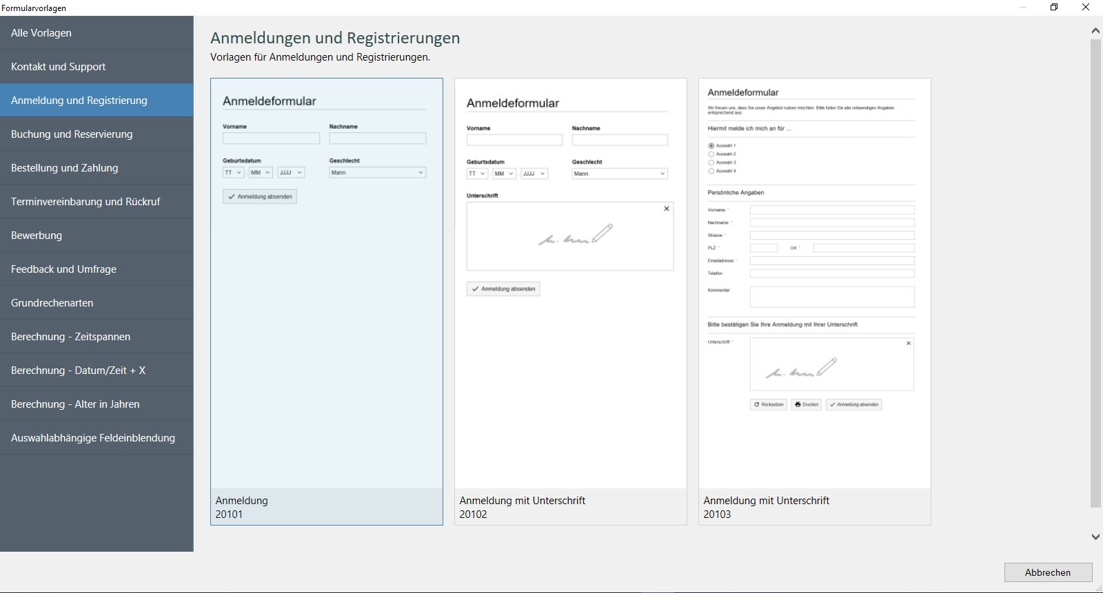 Die Software bringt nun etliche sofort einsatzbereite Formularvorlagen aus verschiedenen Bereichen wie Kontaktformulare, Anmeldeformulare, Bestellformulare, Bewerbungsformulare usw. mit. Die Vorlagen können natürlich beliebig geändert und erweitert werden.